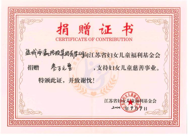為弘揚(yáng)中華民族樂(lè)善好施、扶貧幫困的傳統(tǒng)美德,助力慈善事業(yè)發(fā)展,體現(xiàn)國(guó)有企業(yè)的社會(huì)擔(dān)當(dāng)。日前,鹽城海瀛控股集團(tuán)有限公司積極響應(yīng)婦聯(lián)組織號(hào)召,參與“關(guān)愛(ài)婦兒——鹽城在行動(dòng)”99公益募捐活動(dòng),捐助3萬(wàn)元用于支持慈善事業(yè),為廣大困境婦女兒童大病救助、留守兒童關(guān)愛(ài)幫扶等公益發(fā)展出一份力,盡一份責(zé)。