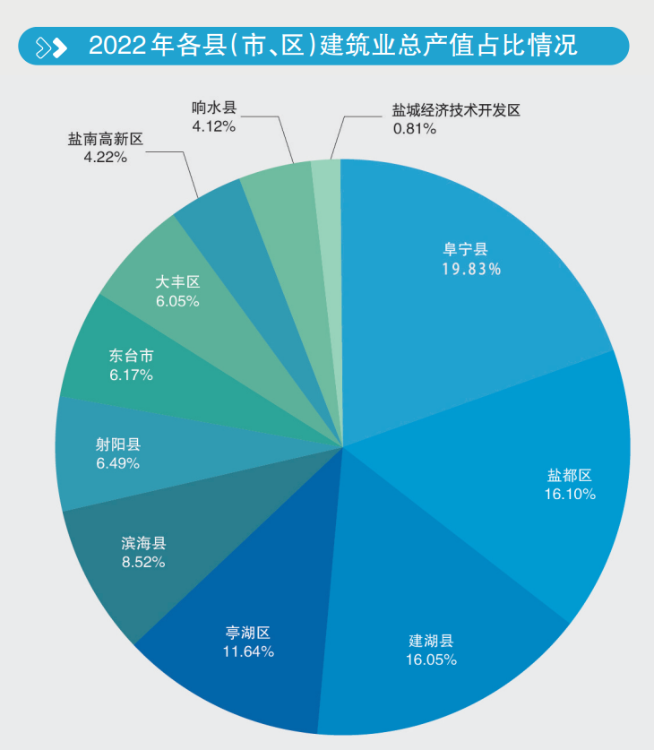 轉(zhuǎn)型升級(jí)勢(shì)頭強(qiáng)勁 我市現(xiàn)有特級(jí)資質(zhì)企業(yè)5家,施工總承包一級(jí)資質(zhì)企業(yè)106家。2022年,建筑業(yè)產(chǎn)值超億元企業(yè)達(dá)518家,其中產(chǎn)值50億元以上企業(yè)6家。產(chǎn)業(yè)集中度顯著提升,建筑業(yè)三強(qiáng)縣完成產(chǎn)值1723.7億元,占全市總產(chǎn)值的51.98%;建筑業(yè)一級(jí)資質(zhì)以上企業(yè)完成產(chǎn)值1905.54億元,占全市建筑業(yè)總產(chǎn)值的57.73%。鹽城作為全省首批綠色建筑示范城市,示范引領(lǐng)作用日益凸顯。兩年多來(lái),全市新開(kāi)工裝配式建筑面積達(dá)916萬(wàn)平方米,創(chuàng)成8個(gè)省級(jí)建筑產(chǎn)業(yè)現(xiàn)代化示范基地。新增城鎮(zhèn)綠色建筑面積1892萬(wàn)平方米,占新建建筑比例達(dá)100%。南海未來(lái)城獲批全省首批綠色低碳城區(qū)試點(diǎn),致力于打造國(guó)內(nèi)一流、省內(nèi)領(lǐng)先的綠色低碳智慧城區(qū)。
