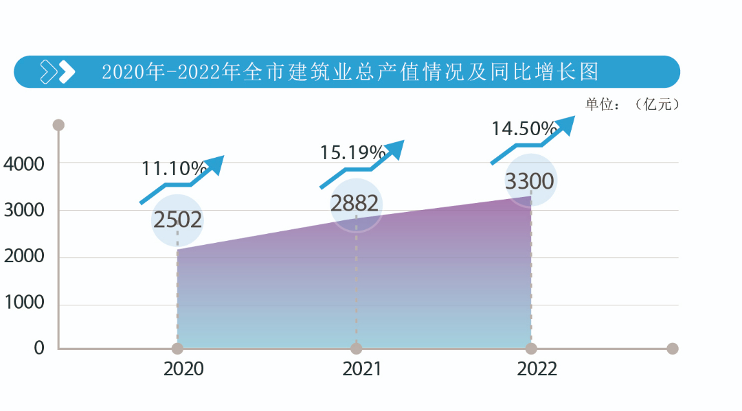 經(jīng)濟(jì)總量持續(xù)攀升 自2020年9月全市建筑業(yè)發(fā)展工作會(huì)議召開(kāi)以來(lái),全市建筑業(yè)累計(jì)完成總產(chǎn)值6182億元,同期增長(zhǎng)70.02%。2022年全市建筑業(yè)完成總產(chǎn)值3300億元,同比增長(zhǎng)15%,發(fā)展速度位列全省前列;新增建筑業(yè)“小升規(guī)”企業(yè)262家,全市入庫(kù)列統(tǒng)建筑企業(yè)累計(jì)達(dá)1389家,建筑業(yè)GDP增速7.8%,位列全省第2位?焖俾涞氐捻(xiàng)目、不斷增長(zhǎng)的數(shù)字,鹽城建筑業(yè)發(fā)展蹄疾步穩(wěn)。