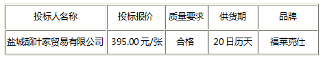 招 標(biāo) 人:鹽城海瀛控股集團(tuán)有限公司 項(xiàng)目名稱:匯菁人才公寓B、C、D棟樓床墊采購項(xiàng)目 最高限價(jià):430.00元/張 中標(biāo)候選人: