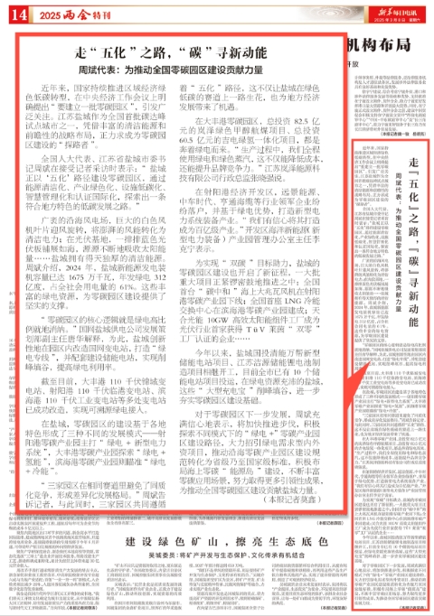3月8日全國(guó)人大代表、鹽城市委書記周斌接受《新華每日電訊》采訪周斌代表表示鹽城將為推動(dòng)全國(guó)零碳園區(qū)建設(shè)貢獻(xiàn)力量