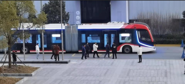 近日,如果您走在青年路沿線,將可能看到一輛四節(jié)車廂編組、集合了公共汽車、有軌電車和輕型動車特點的超長公共交通車輛。這是超級虛擬軌道列車(SRT)正在試運行。