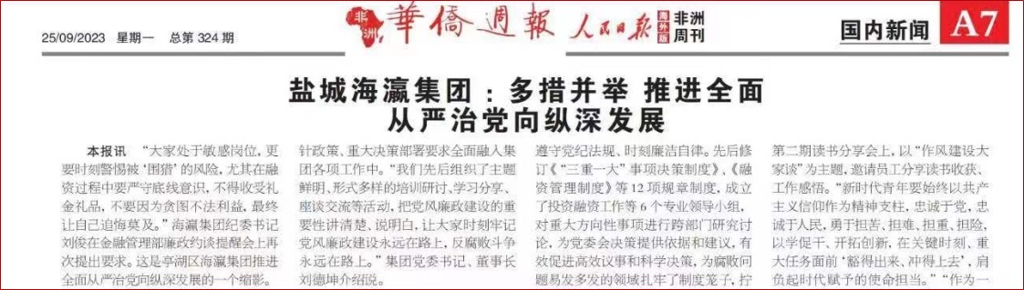 海瀛集團:多措并舉 推進全面 從嚴治黨向縱深發(fā)展 |