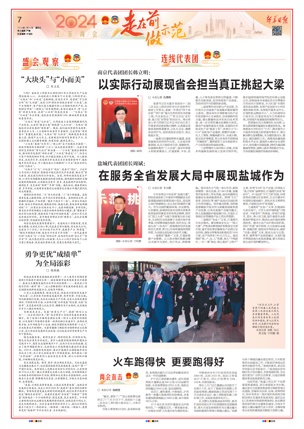 鹽城代表團(tuán)團(tuán)長、 市委書記周斌 今年省兩會(huì)中有更多“鹽城元素”,特別是省政府工作報(bào)告中明確提出支持鹽城建設(shè)綠色低碳發(fā)展示范區(qū),這些既讓我們倍感振奮,也讓我們深感責(zé)任重大。作為全國的能源高地、農(nóng)業(yè)重地、生態(tài)要地,鹽城將迅速全面落實(shí)省委省政府最新部署要求和省兩會(huì)精神,把牢記“國之大者”與提升發(fā)展地位結(jié)合起來,主動(dòng)把自身發(fā)展置于全國大局中來考量,持續(xù)擦亮綠色能源、現(xiàn)代農(nóng)業(yè)、美麗生態(tài)“三張名片”,統(tǒng)籌做好經(jīng)濟(jì)發(fā)展和民生改善,努力以自身所能服務(wù)國家所需,為全國全省發(fā)展大局多作貢獻(xiàn)。 一是做好“能源+”文章,打造新能源產(chǎn)業(yè)集群。以入選全國首批碳達(dá)峰試點(diǎn)城市為契機(jī),先行先試、探路領(lǐng)跑。堅(jiān)持風(fēng)光火氣氫一體化布局、源網(wǎng)荷儲(chǔ)用一體化發(fā)展,在LNG冷能、氫能等開發(fā)利用上率先突破,加快構(gòu)建清潔低碳安全高效能源體系。圍繞“五化”要求,加快低(零)碳產(chǎn)業(yè)園試點(diǎn)園區(qū)和示范項(xiàng)目建設(shè)。堅(jiān)持鏈?zhǔn)剿季S,協(xié)同推進(jìn)新能源開發(fā)利用與新能源裝備制造產(chǎn)業(yè)發(fā)展,以風(fēng)光氫儲(chǔ)產(chǎn)業(yè)鏈為重點(diǎn),深入實(shí)施強(qiáng)鏈補(bǔ)鏈延鏈行動(dòng),打造長三角地區(qū)新型儲(chǔ)能產(chǎn)業(yè)示范應(yīng)用集群。 二是做好“農(nóng)業(yè)+”文章,打造現(xiàn)代化農(nóng)業(yè)強(qiáng)市。聚焦糧食安全這一“國之大者”,嚴(yán)格落實(shí)耕地保護(hù)和糧食安全責(zé)任制,毫不放松抓好重要農(nóng)產(chǎn)品穩(wěn)定安全供給,確保全市糧食面積穩(wěn)定在1480萬畝、總產(chǎn)保持在140億斤以上。盤活用好“地、產(chǎn)、房、人”資源,放大“干部聯(lián)村、一村一策”效應(yīng),精心做好“土特產(chǎn)”文章,培育“6+N”全產(chǎn)業(yè)鏈,持續(xù)放大“鹽之有味”品牌效應(yīng),打造現(xiàn)代農(nóng)業(yè)“新標(biāo)桿”。學(xué)習(xí)運(yùn)用“千萬工程”經(jīng)驗(yàn),持續(xù)改善農(nóng)民群眾住房條件,扎實(shí)開展鄉(xiāng)村環(huán)境綜合整治提升,深化鄉(xiāng)風(fēng)文明移風(fēng)易俗,凸顯和美鄉(xiāng)村“新風(fēng)貌”。 三是做好“生態(tài)+”文章,打造國際生態(tài)會(huì)客廳。守住生態(tài)環(huán)境質(zhì)量“只能更好、不能變壞”的底線,持續(xù)打好藍(lán)天、碧水、凈土保衛(wèi)戰(zhàn),提升重要生態(tài)系統(tǒng)保護(hù)修復(fù)水平,推動(dòng)生態(tài)環(huán)境治理持續(xù)改善。健全生態(tài)產(chǎn)品價(jià)值實(shí)現(xiàn)機(jī)制,用好“世遺”金字招牌,大力發(fā)展生態(tài)康養(yǎng)、高端民宿、銀發(fā)經(jīng)濟(jì)等新業(yè)態(tài);做好“世遺+旅游”文章,推動(dòng)生態(tài)與文旅、體育、康養(yǎng)等產(chǎn)業(yè)深度融合,全面打造世界級(jí)濱海生態(tài)旅游廊道,更大程度實(shí)現(xiàn)生態(tài)價(jià)值的蝶變轉(zhuǎn)化。 來源:新華日報(bào)