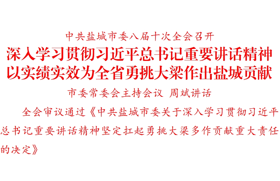 5月30日,中國共產(chǎn)黨鹽城市第八屆委員會第十次全體會議召開。全會堅(jiān)持以習(xí)近平新時(shí)代中國特色社會主義思想為指導(dǎo),全面貫徹黨的二十大和二十屆二中、三中全會精神,按照省委十四屆九次全會部署要求,對深入學(xué)習(xí)貫徹習(xí)近平總書記參加今年全國人代會江蘇代表團(tuán)審議時(shí)的重要講話精神進(jìn)行部署,動員全市上下牢記囑托、感恩奮進(jìn),堅(jiān)定扛好勇挑大梁政治責(zé)任,為全國全省發(fā)展大局多作貢獻(xiàn)。 全會由市委常委會主持。市委書記周斌作了講話。 全會審議通過《中共鹽城市委關(guān)于深入學(xué)習(xí)貫徹習(xí)近平總書記重要講話精神堅(jiān)定扛起勇挑大梁多作貢獻(xiàn)重大責(zé)任的決定》。周斌在講話中就《決定(草案)》作了說明。 會議指出習(xí)近平總書記參加今年全國人代會江蘇代表團(tuán)審議時(shí)的重要講話,殷殷囑托賦予重大使命,語重心長飽含深切關(guān)懷,為我們做好工作提供了科學(xué)指引和根本遵循。兩個(gè)多月來,在習(xí)近平總書記重要講話精神指引下,全市上下沉著應(yīng)對復(fù)雜形勢,堅(jiān)決貫徹落實(shí)黨中央和省委決策部署,迎難而上、奮力拼搏,經(jīng)濟(jì)社會發(fā)展呈現(xiàn)良好態(tài)勢。 會議強(qiáng)調(diào)深入學(xué)習(xí)貫徹習(xí)近平總書記對江蘇工作重要講話重要指示精神,是當(dāng)前和今后一個(gè)時(shí)期貫穿鹽城全部工作的主線。要嚴(yán)格對標(biāo)對表總書記重要講話強(qiáng)調(diào)的重大要求、重要任務(wù),準(zhǔn)確把握“四個(gè)著力點(diǎn)”的豐富內(nèi)涵和實(shí)踐路徑,一項(xiàng)一項(xiàng)細(xì)化工作目標(biāo)舉措,勠力同心、狠抓落實(shí),努力交出“十四五”收官的高分答卷,以實(shí)績實(shí)效為全省勇挑大梁作出鹽城貢獻(xiàn)、展現(xiàn)鹽城擔(dān)當(dāng)。 會議指出要持之以恒推動融合發(fā)展,努力實(shí)現(xiàn)科技創(chuàng)新與產(chǎn)業(yè)創(chuàng)新互促并進(jìn)。優(yōu)化科技供給,打造更高能級科創(chuàng)平臺矩陣,高標(biāo)準(zhǔn)建設(shè)鹽城綠色低碳科創(chuàng)園,開展更高質(zhì)量前沿技術(shù)攻關(guān),推進(jìn)更高水平創(chuàng)新開放合作,積蓄創(chuàng)新“策源力”。放大集群優(yōu)勢,以創(chuàng)新煥發(fā)傳統(tǒng)產(chǎn)業(yè)活力、壯大新興產(chǎn)業(yè)規(guī)模、搶占未來產(chǎn)業(yè)先機(jī),夯實(shí)產(chǎn)業(yè)“硬基礎(chǔ)”。堅(jiān)持引培并舉,發(fā)揮好企業(yè)科產(chǎn)融合主體地位,深化科技招商強(qiáng)支撐,注重梯度培育強(qiáng)雁陣,突出生態(tài)建設(shè)強(qiáng)賦能,鍛造發(fā)展“生力軍”。 全會強(qiáng)調(diào)要堅(jiān)定不移深化改革開放,努力實(shí)現(xiàn)激發(fā)動力與增強(qiáng)活力雙向賦能。更加突出標(biāo)志性改革首創(chuàng)性、牽引性改革撬動性、探索性改革前瞻性,以深層次改革增強(qiáng)牽引力。抓住制度型開放新機(jī)遇,精準(zhǔn)落實(shí)穩(wěn)定外貿(mào)各項(xiàng)措施,深挖綠色貿(mào)易潛力,以高水平開放提升聚合力。深入落實(shí)國家提振消費(fèi)專項(xiàng)行動,優(yōu)化消費(fèi)供給,推動房地產(chǎn)市場平穩(wěn)健康發(fā)展,以多層級消費(fèi)注入新動力。全面落實(shí)民營企業(yè)座談會精神、民營經(jīng)濟(jì)促進(jìn)法,進(jìn)一步突出“極簡、更優(yōu)、賦能、精準(zhǔn)”,打造鹽城營商環(huán)境“升級版”,以更優(yōu)質(zhì)環(huán)境營造競爭力。 會議指出要全力以赴落實(shí)國家戰(zhàn)略,努力實(shí)現(xiàn)服務(wù)大局與自身發(fā)展協(xié)力共進(jìn)。在深化區(qū)域協(xié)作上提升顯示度,深度融入長三角一體化,堅(jiān)定不移向海圖強(qiáng),加強(qiáng)與京津冀和粵港澳大灣區(qū)的對接合作,深化“一帶一路”經(jīng)貿(mào)合作,深入貫徹黨中央關(guān)于東西部協(xié)作和對口支援決策部署,促進(jìn)合作共贏。在服務(wù)發(fā)展大局上提升貢獻(xiàn)度,進(jìn)一步擦亮綠色能源、現(xiàn)代農(nóng)業(yè)、美麗生態(tài)“三大名片”。在促進(jìn)互聯(lián)互通上提升便利度,著力強(qiáng)樞紐、暢血脈、降成本,完善交通運(yùn)輸體系。在統(tǒng)籌發(fā)展和安全上提升精準(zhǔn)度,堅(jiān)持和發(fā)展新時(shí)代“楓橋經(jīng)驗(yàn)”,時(shí)刻壓緊壓實(shí)安全生產(chǎn)責(zé)任,建設(shè)更高水平平安鹽城、法治鹽城。 會議強(qiáng)調(diào)要堅(jiān)持不懈促進(jìn)共同富裕,努力實(shí)現(xiàn)民生事業(yè)和民生質(zhì)感同步提升。積極推進(jìn)以人為核心的新型城鎮(zhèn)化,發(fā)揮鄉(xiāng)鎮(zhèn)聯(lián)城帶鄉(xiāng)紐帶作用,扎實(shí)推進(jìn)鄉(xiāng)村全面振興,讓城鄉(xiāng)“融”的步伐更快。千方百計(jì)穩(wěn)就業(yè),多措并舉促增收,用心用情辦實(shí)事,讓民生“暖”的感受更濃。優(yōu)化文化產(chǎn)品和服務(wù)供給,實(shí)施文藝精品工程,深化城鄉(xiāng)精神文明建設(shè),切實(shí)做好以文化人、以文興業(yè)這篇大文章,讓文化“興”的活力更強(qiáng)。 會議指出要深入開展學(xué)習(xí)教育,以高質(zhì)量黨建引領(lǐng)高質(zhì)量發(fā)展。黨的領(lǐng)導(dǎo)要再加強(qiáng),堅(jiān)決維護(hù)黨中央